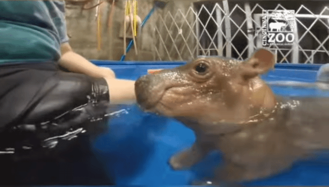 이슈 사육사 깨물어버리는 아기 하마.gif