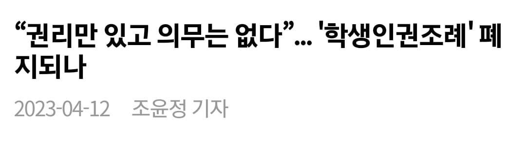 근데 문제는 "우리나라 학생 인권조례"에서 발생함