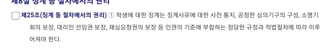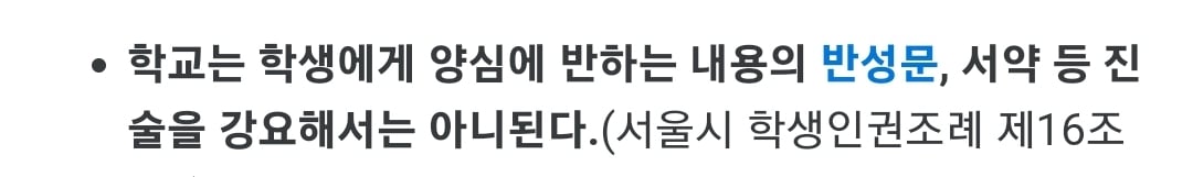 "육체적 체벌만 아닐뿐 구체적인 규범을 학생이 어길시 교사가 취할수있는 체벌에 대해서도 명시하고있단거임"
