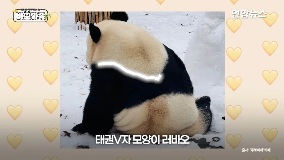 둘중 다른 하나는 아이바오처럼 넓적둥글하게 무늬골이 패여있는거 같음 ㅋㅋㅋㅋ