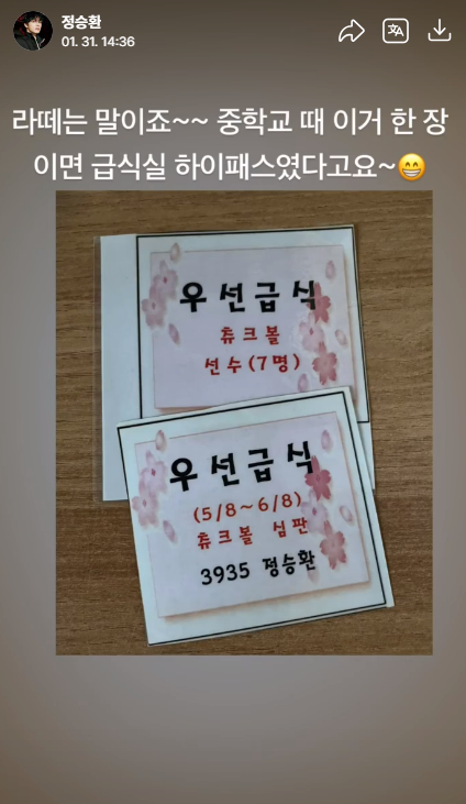 어렸을 때부터 먹는 게 좋았는지 꼭꼭 모아둔 라떼 우선 급식 종이도 보여주고