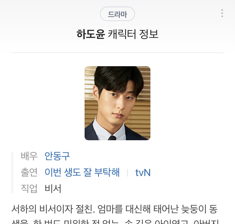 원덬은 드라마 이생잘 하도윤 역할로 처음 본 배우임배우 이미지 보다시피 차갑고 샤프하고뭔가 본부장님 이미지 궁금해서 이생잘 하도윤 찾아봤는데아..안동구?찾아보니 본명인듯 동구씨....