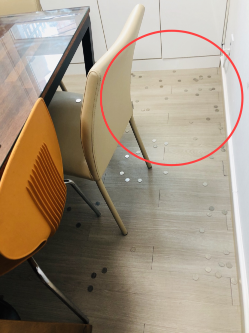 학부모 A씨가 2019년 서울의 한 국공립유치원 원장실에서 미납된 유아학비를 동전 수백개로 바꿔 원장을 향해 집어 던지는 바람에 흩뿌려진 동전들. 국공립유치원교사노조 제공