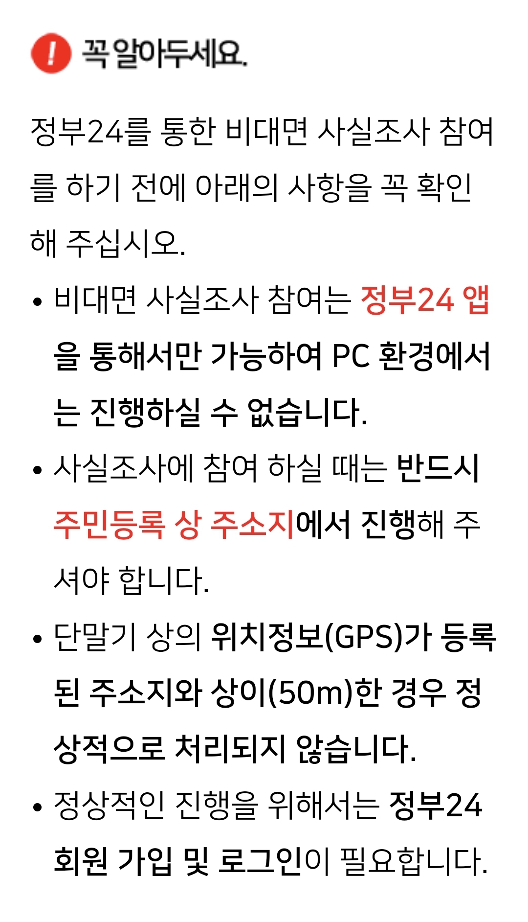 A. GPS상 주민등록지 50m 이내에서 해야함