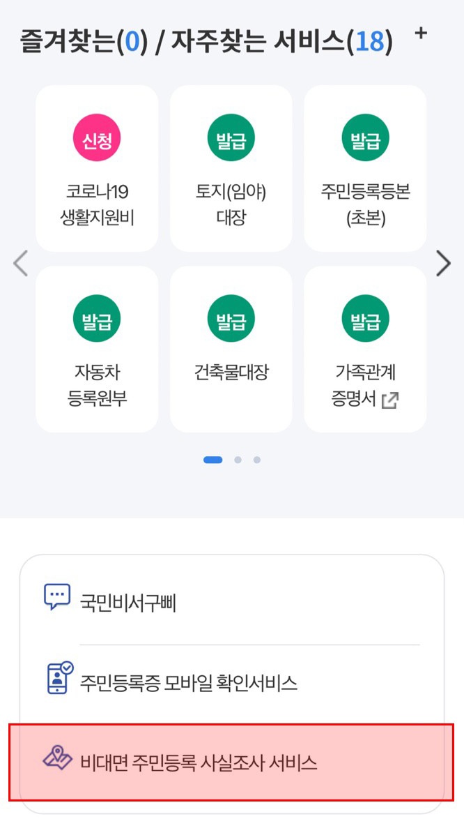 - 비대면 주민등록 사실조사 서비스 클릭