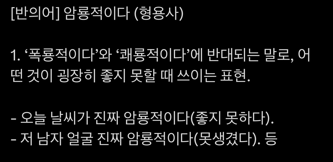 파생된 반의어 '암룡적이다'