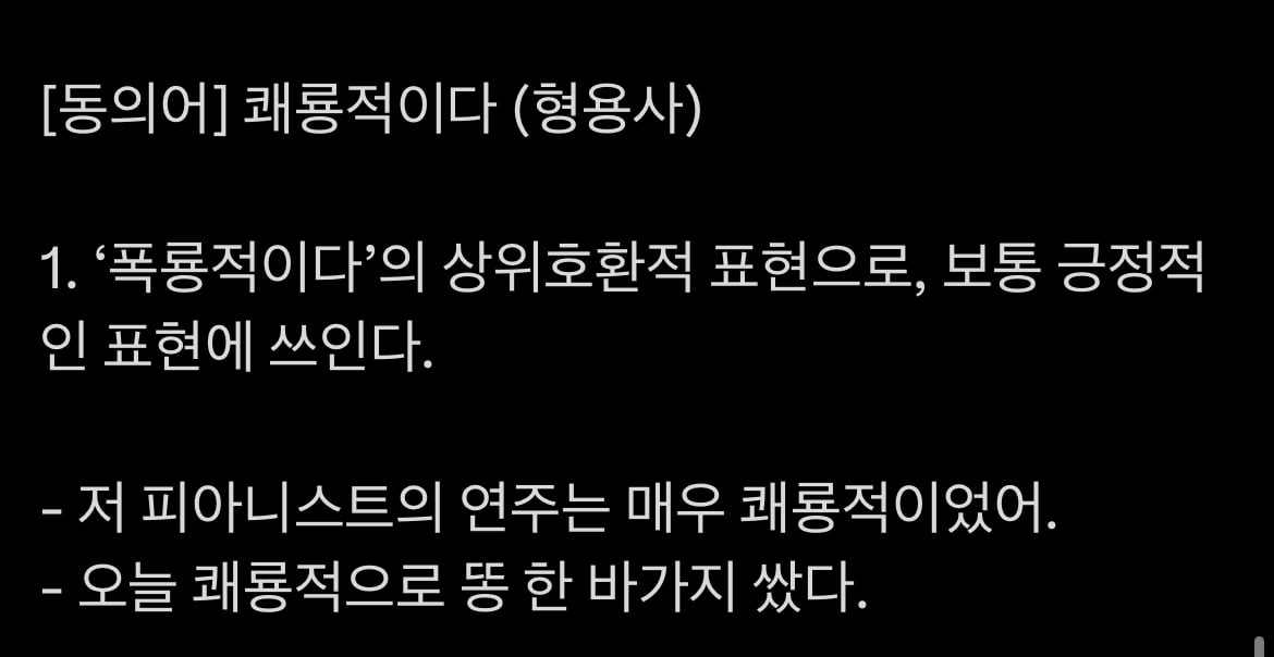 그리고 또 파생된 폭룡적이다의 긍정적+좀 더 어마어마하다 느낌으로 쓰이는 상위 호환형 단어 '쾌룡적이다'