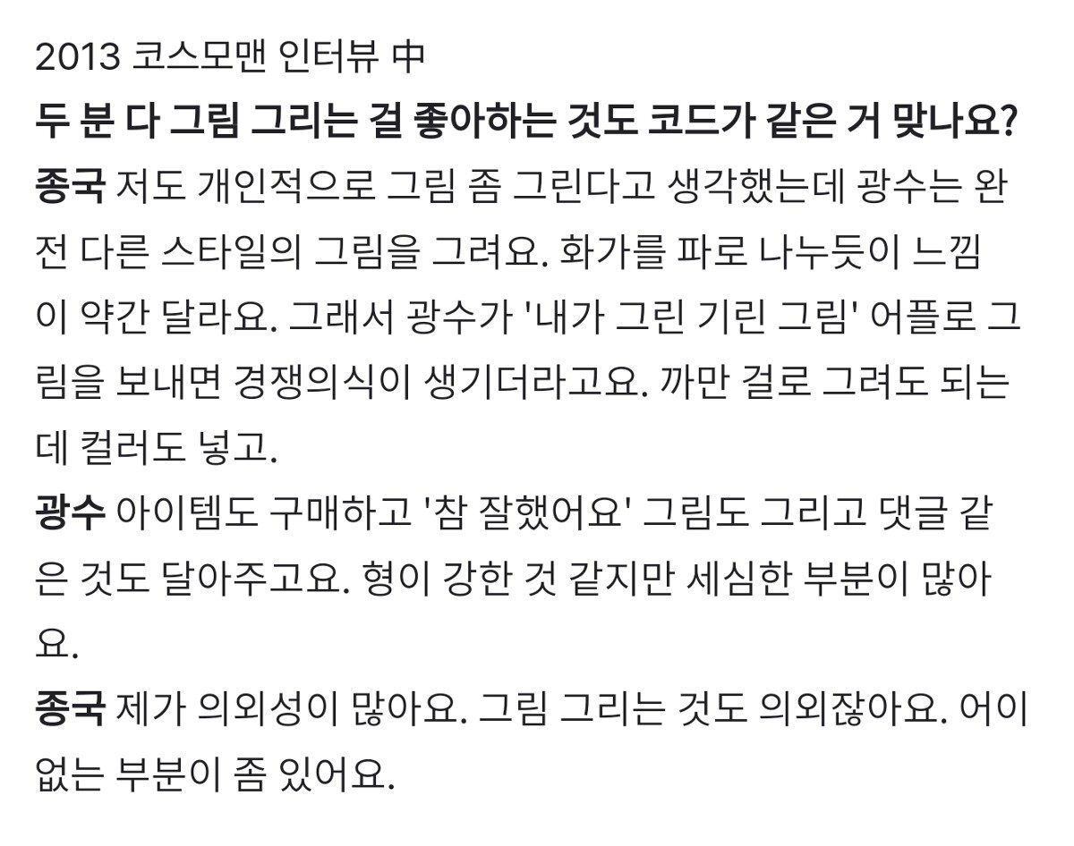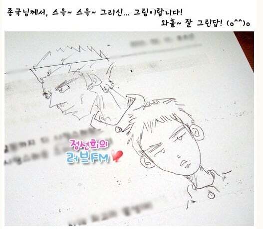 종이만 있으면 옆에 있는 멤버들 그려서 주는거 좋아한다고 함