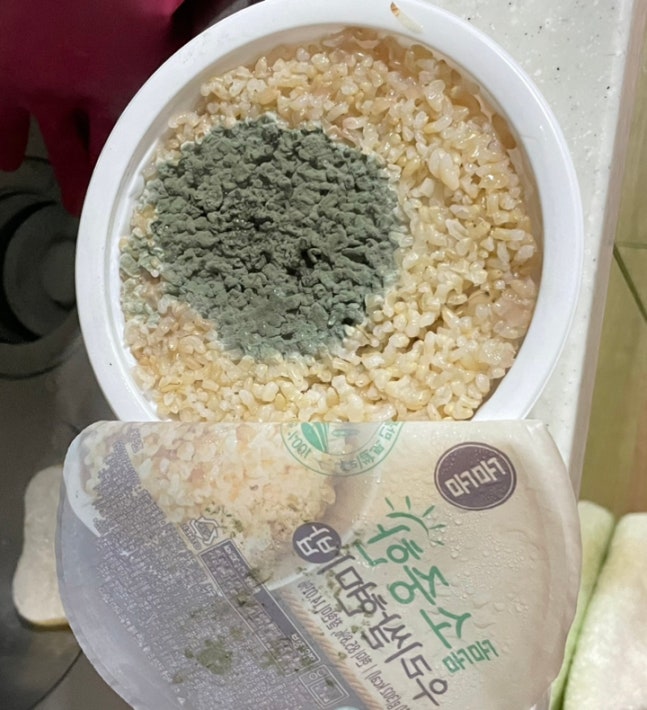 서울에 거주하는 A씨는 최근 '곰곰 소중한 우리쌀 현미밥'(곰곰 현미밥)을 개봉하고 깜짝 놀랐다. 쿠팡 '로켓 배송'(24시간 안에 상품을 배송하는 서비스)을 통해 받아본 '곰곰 현미밥' 표면이 정체모를 '보랏빛 이물'로 물들어 있었기 때문이다. 현미밥에선 시큼한 악취까지 풍겼다. A씨는 주문한 20개 상품 중 5개 상품을 개봉했고, 그 중 2개 상품에 이상이 발생한 것을 확인한 뒤 환불을 결정했다.