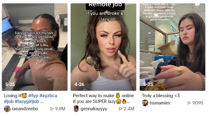틱톡 내 #lazygirljob 게시글 갈무리