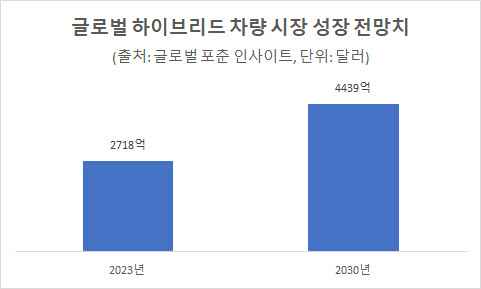 ‘2대 차 시장’으로 꼽히는 미국 역시 하이브리드 차량에 주목하고 있다. 스탠더드앤푸어스(S&P)글로벌 모빌리티는 미국 내 하이브리드 차량 판매량이 향후 5년간 3배 이상 늘어날 것으로 내다봤다. 2028년 미국 내 신차 판매의 24%가량을 차지할 것이란 예측이다.