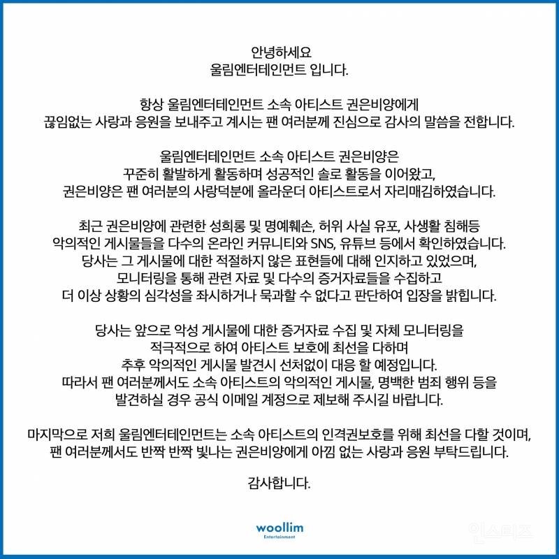 이슈 권은비 소속사 고소 공지