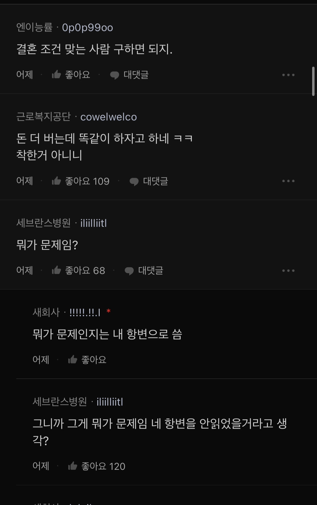 댓 400개 넘게 달려서 일부만 가져옴