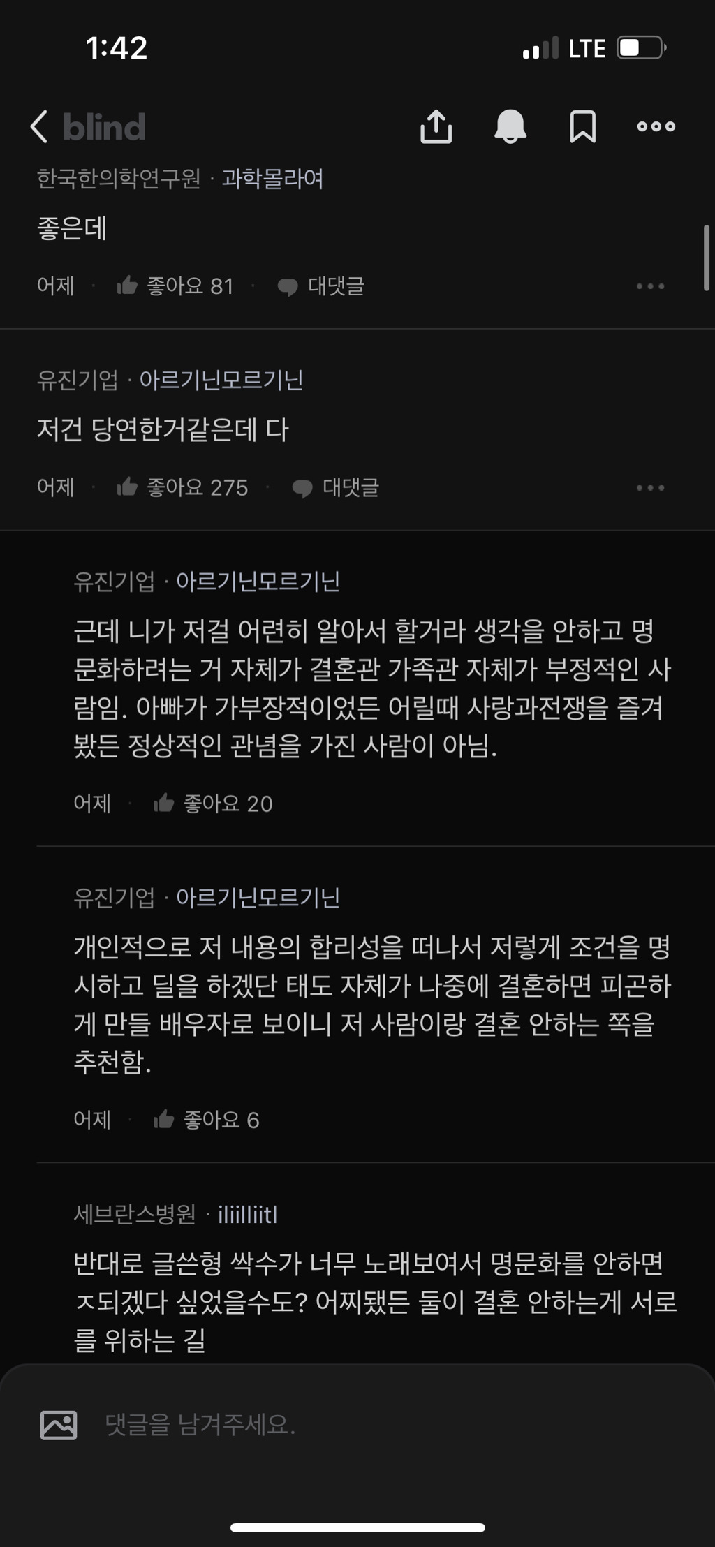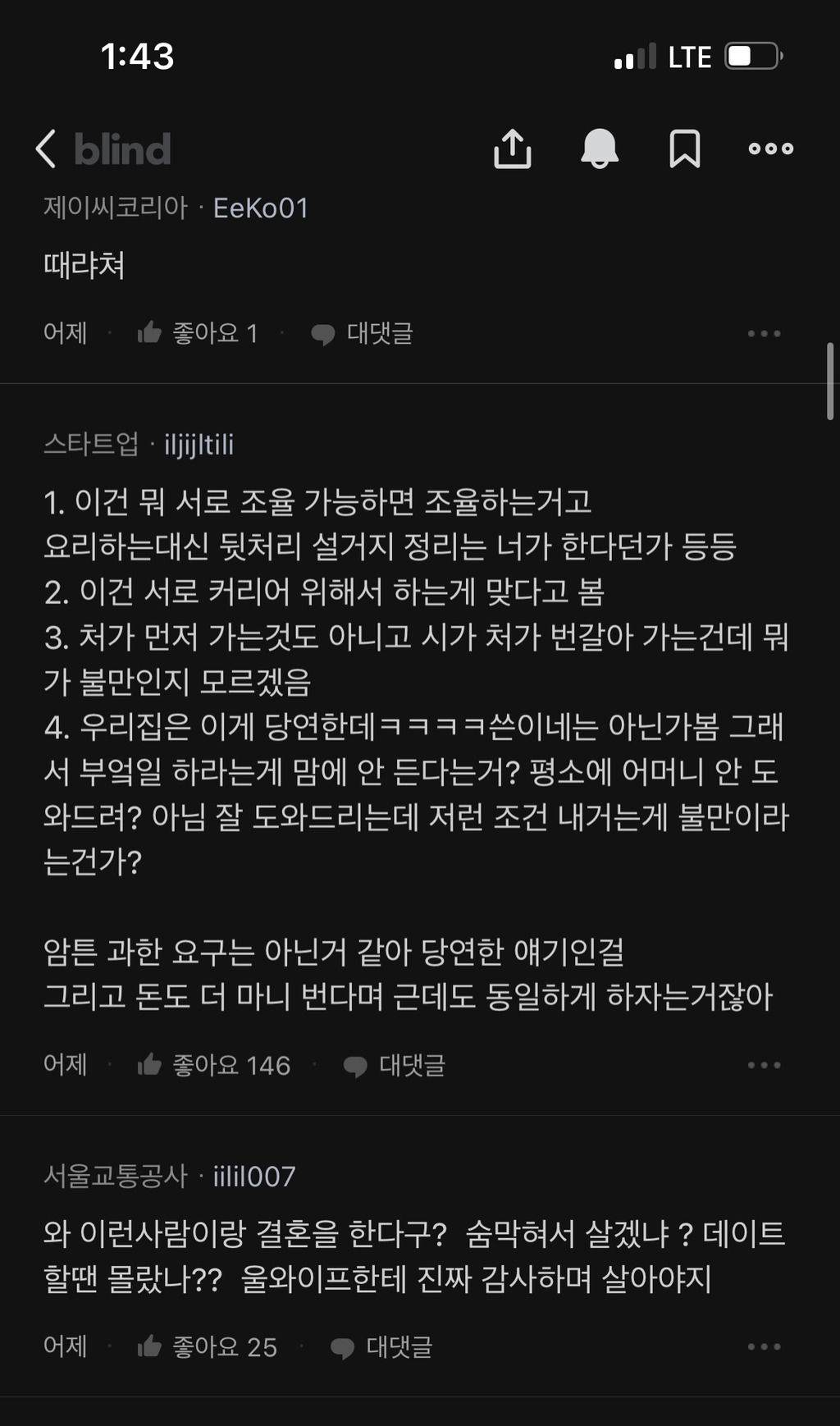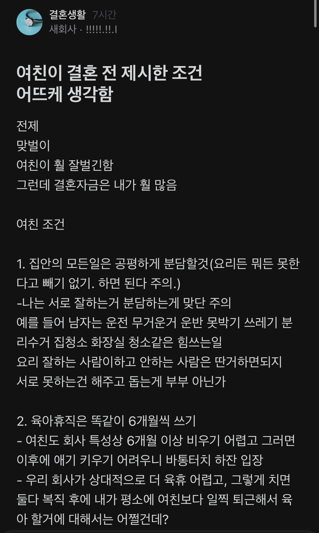 블라인드에 올라온 글 보셨어요? "여친이 결혼 전 제시한 조건 어뜨케 생각함 (결혼생활)"