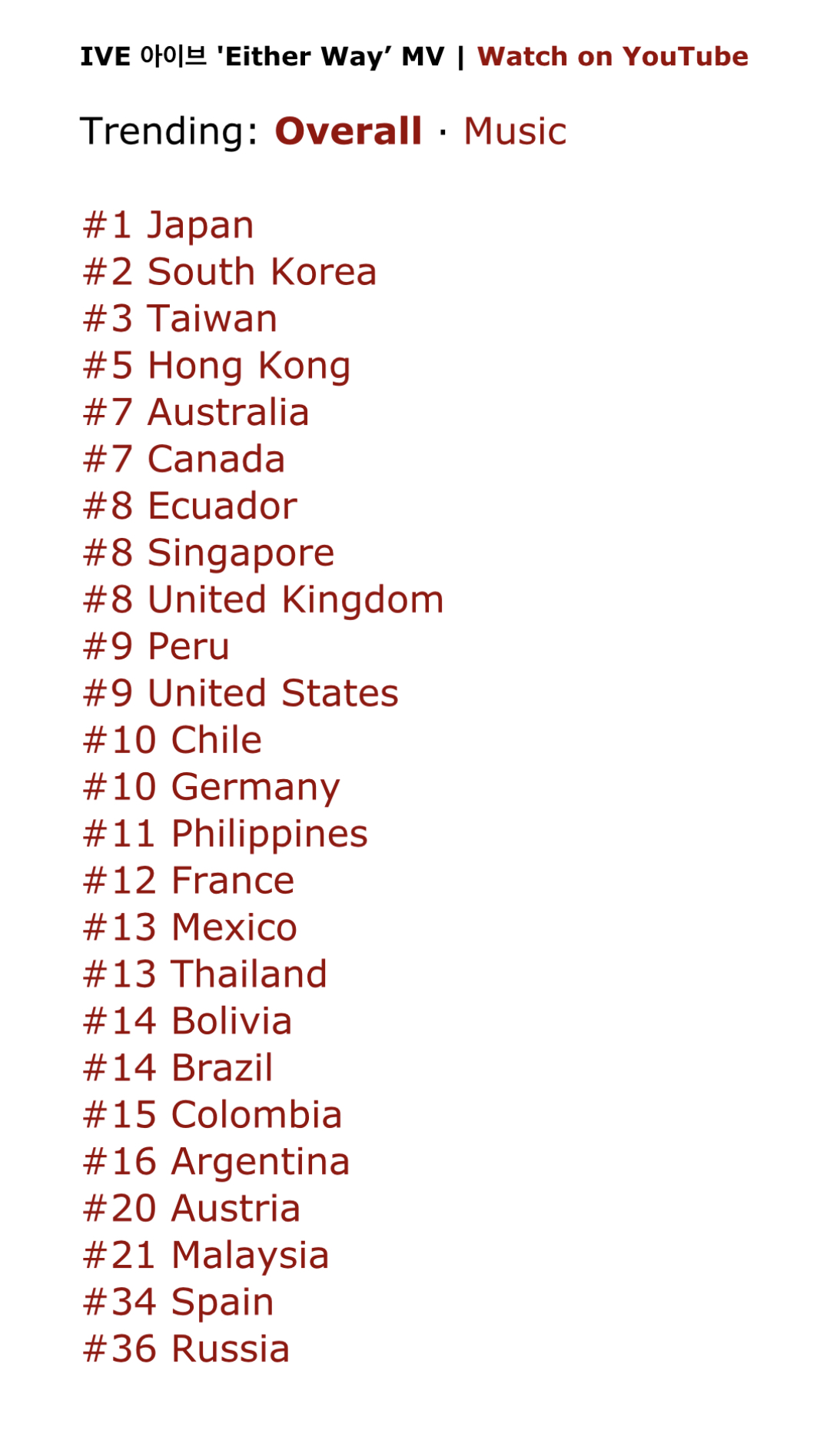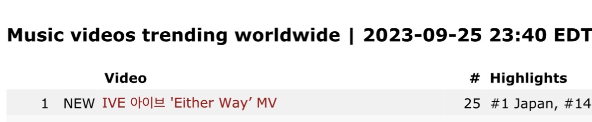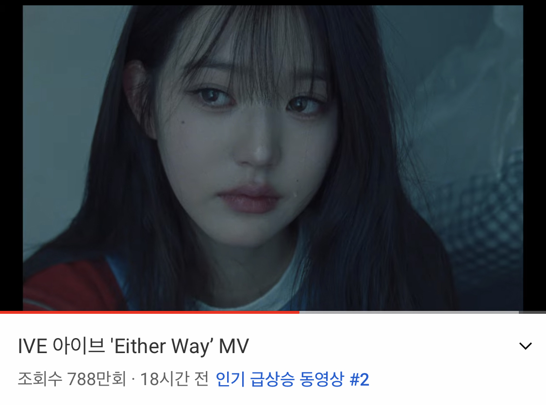 현재 유튜브 인기 급상승 동영상 2위인 아이브 'Either Way’ 뮤직비디오