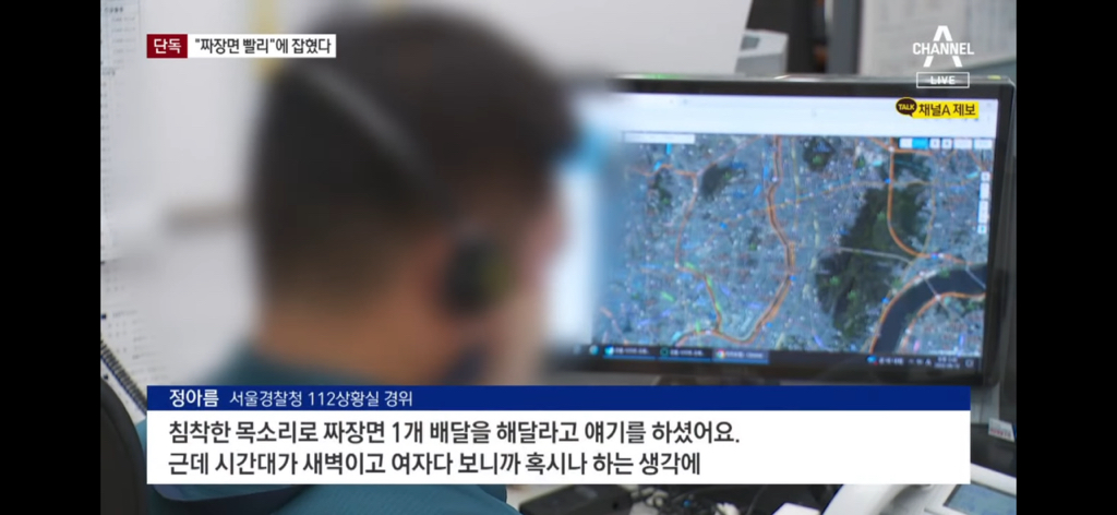 112에 전화를 건 피해 여성이 남성에게 들킬까봐 "짜장면 1개를 빨리 배달해달라"고 말했는데, 112 상황실 직원이 그냥 넘기지 않고, 빠르게 대처한 겁니다.