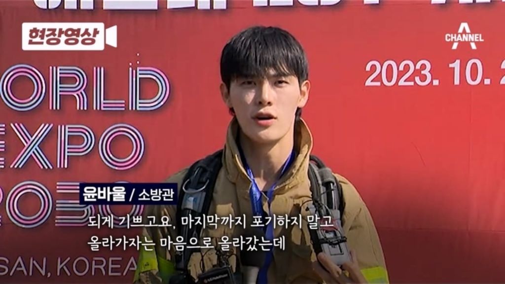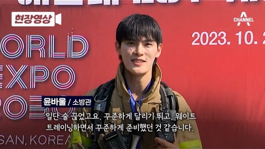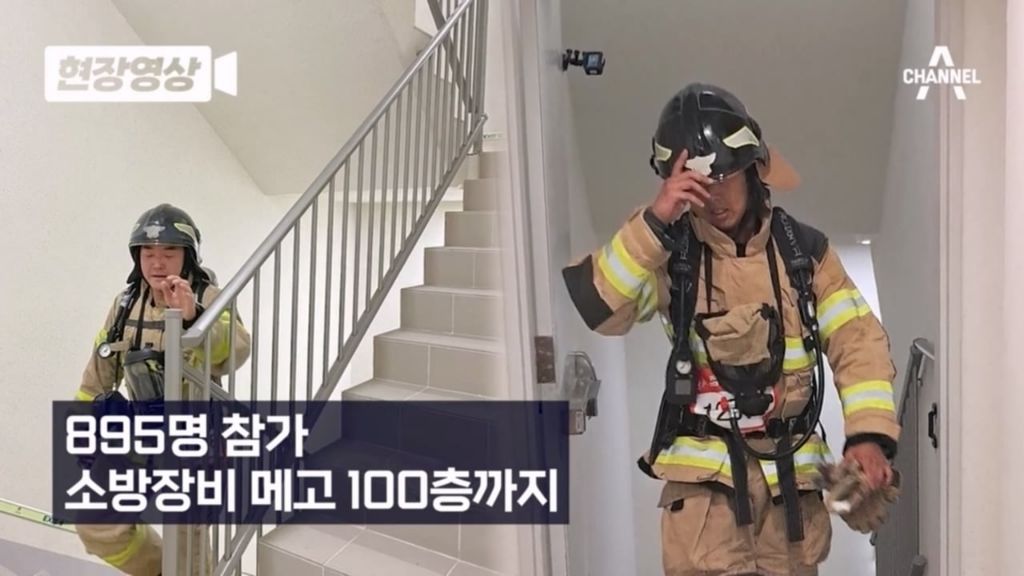 이슈 부산 해운대 LCT 100층 계단오르기 대회 1위 윤바울 소방관.jpg