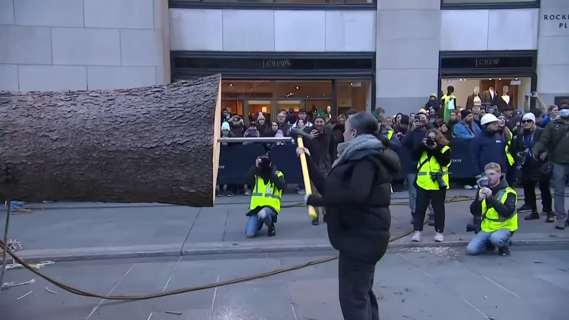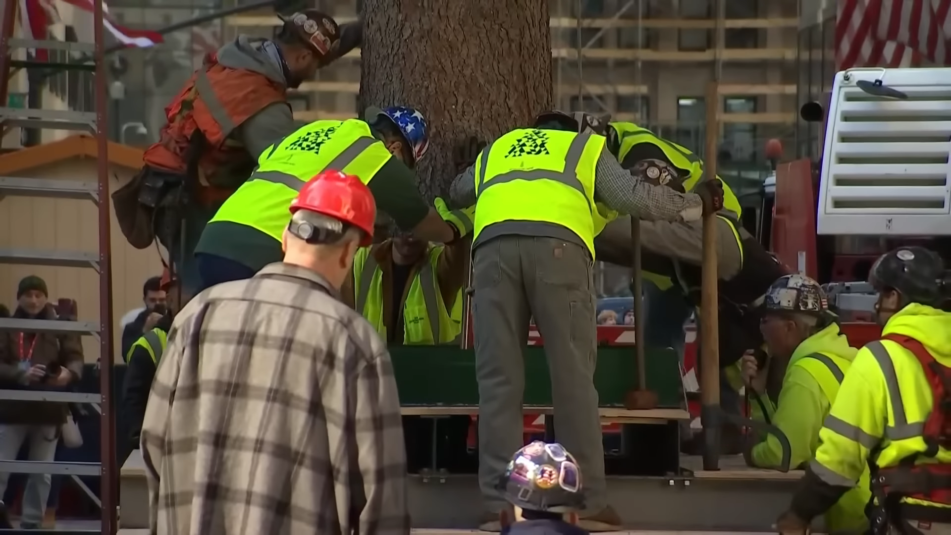 트리 설치하는거 구경하러온 뉴욕 시민들