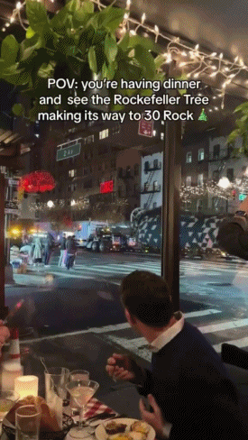 식당에서 밥먹다 말고 크리스마스 트리 배송되는거