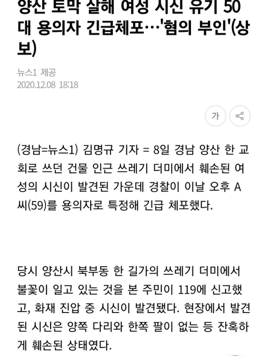 내가 살던 곳 근처에서 시신이 발견됐대.