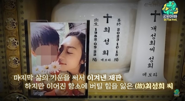 최근 유튜버 ‘불륜잡는 헌터 공룡아빠’(이하 공룡아빠)는 자신의 유튜브 채널을 통해 최성희 씨를 추모하는 영상을 공개했다.