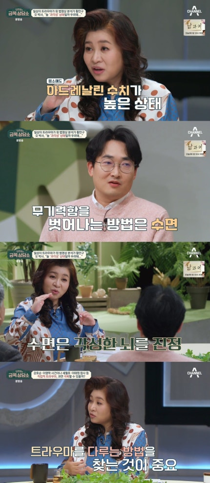 오은영은 두 사람에게 "트라우마를 잘 다루지 못하면 과민해 지거나 우울증이 오기도 한다. 오늘을 기회로 트라우마를 더 잘 다루는 방법을 의논하는 것도 중요할 것 같다"고 조언했다.