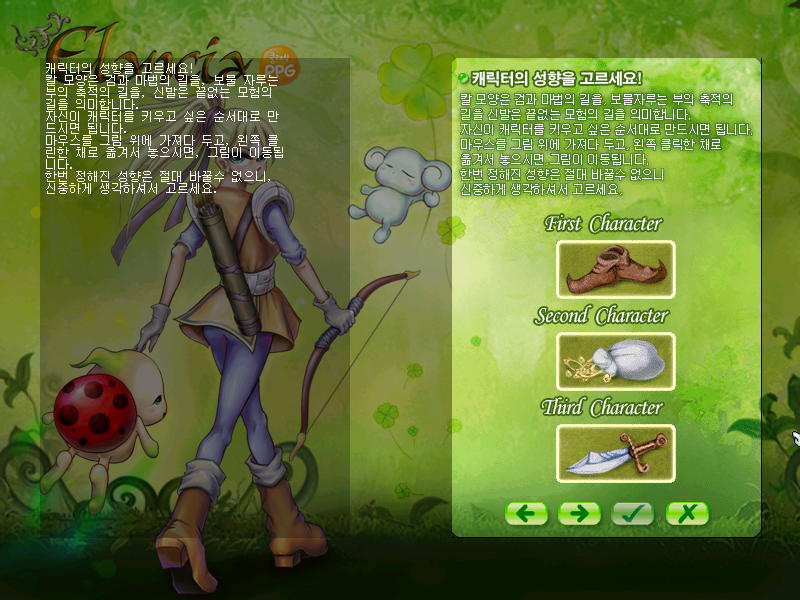 캐릭터의 성별부터 시작해 피부색으로 나뉘는 종족과 모험가, 상인, 전사 세 개의 성향 중