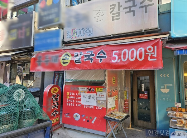 서울 중구에서 5000원짜리 칼국수를 판매 중인 '착한가격업소' 지정 가게의 전경. /사진=김영리 기자