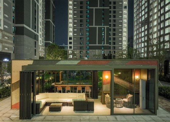 수거된 플라스틱 용기 분쇄물과 초고강도 콘크리트를 혼합한 건설 자재는 공동주택 시설물에도 적용됐다. 사진 아모레퍼시픽