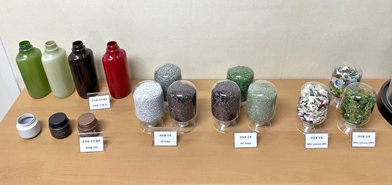 수거된 화장품 공병은 분쇄 및 가공돼 다시 화장품 용기로 태어난다. 사진 중앙포토
