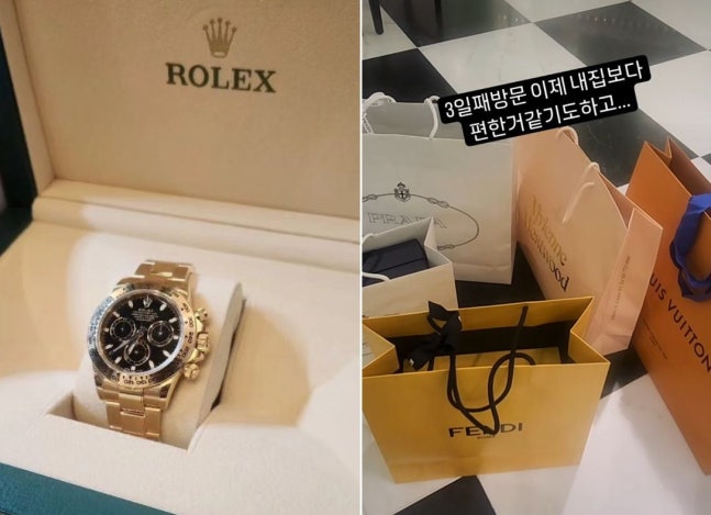 이후 A씨의 인스타그램에는 각종 명품 구매 사진이 잇따라 올라와 네티즌들의 부러움을 자아냈다. 그는 열차 좌석에 명품 쇼핑백들을 실은 사진을 올리며 “현재 2억2000만원을 썼네 참 어이가 없네”라고 적었다. 롤렉스 시계, 어머니를 위한 1700만원짜리 명품 코트, 커플 명품 운동화, 친척과 지인들을 위한 명품 및 현금 선물 등의 사진이 올라왔다. 그는 명품 매장에서 촬영한 사진을 올리며 “3일째 방문 이제 내 집보다 편한 것 같기도 하고...”라고 적었다.