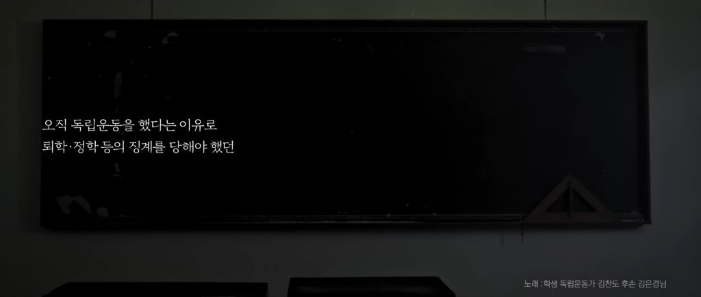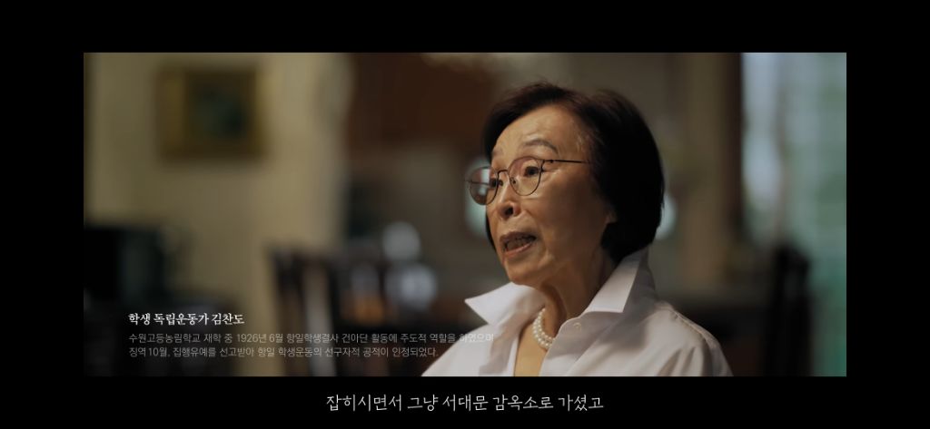 "보고 있는가. 우리가 목이 터져라 외치던 독립을 했어. 우리가 헛되지 않았음을, 틀리지 않았음을, 이 대성한 대한민국이 이야기해 주고 있네."