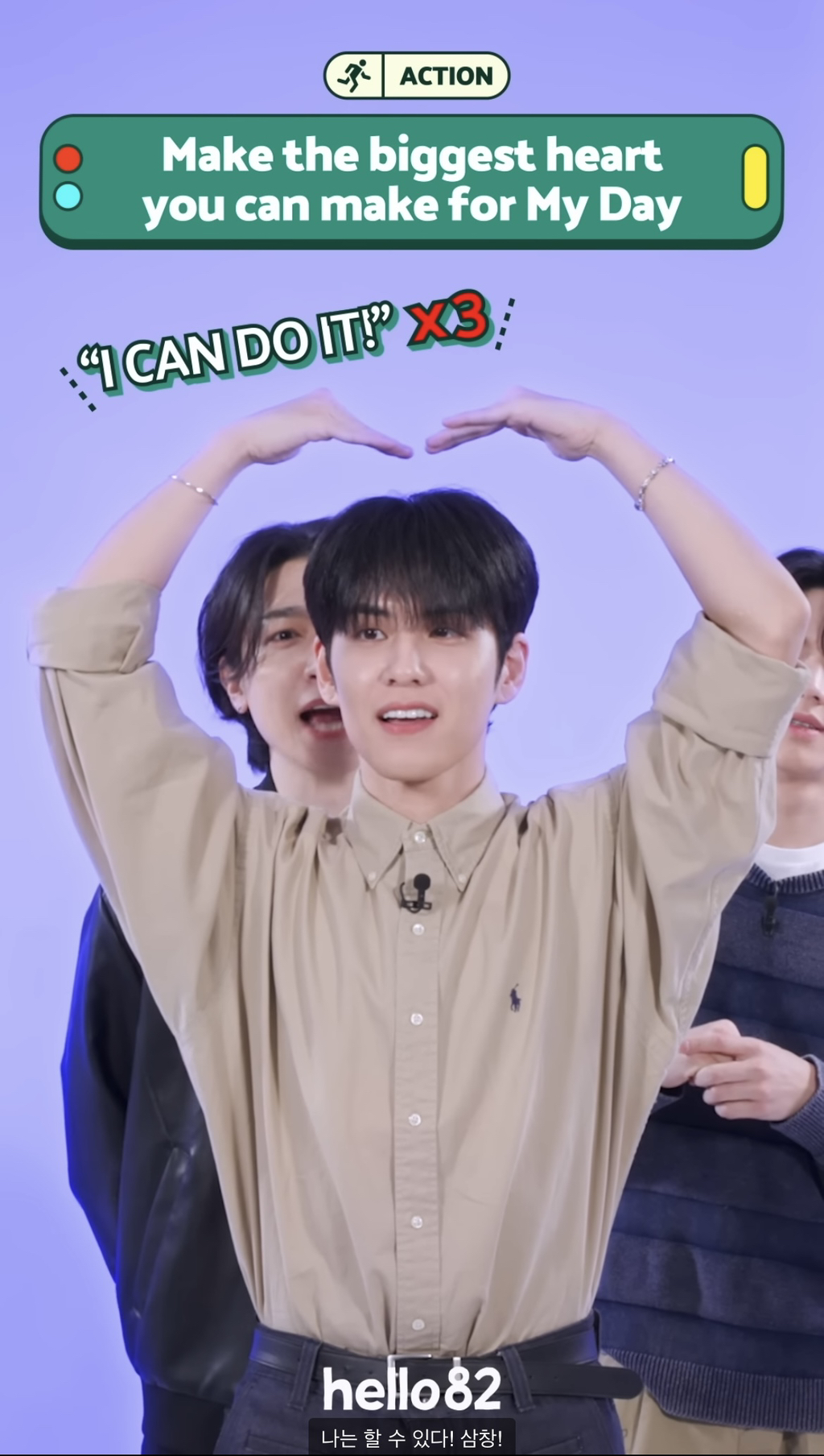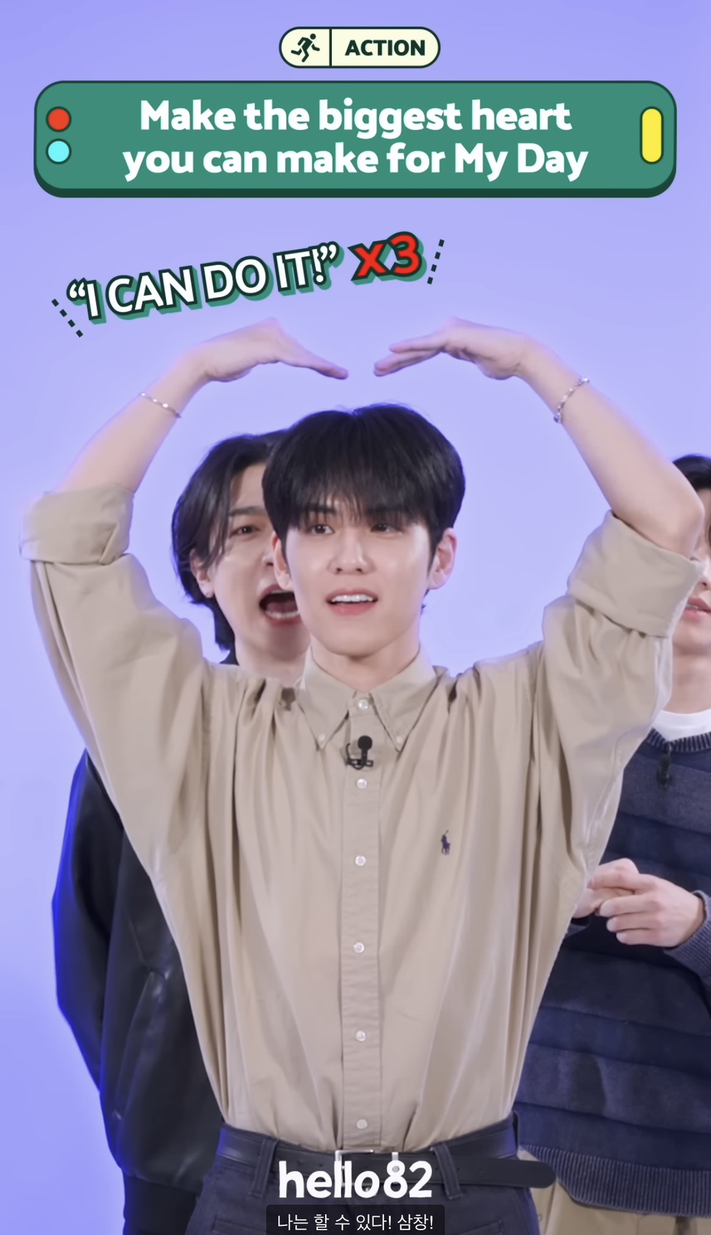 팬을위한 큰 하트 만드는중인 멤버 원필에게