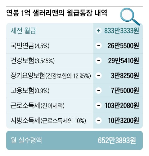 ✅1억 연봉자, 실수령액은 月 650만원