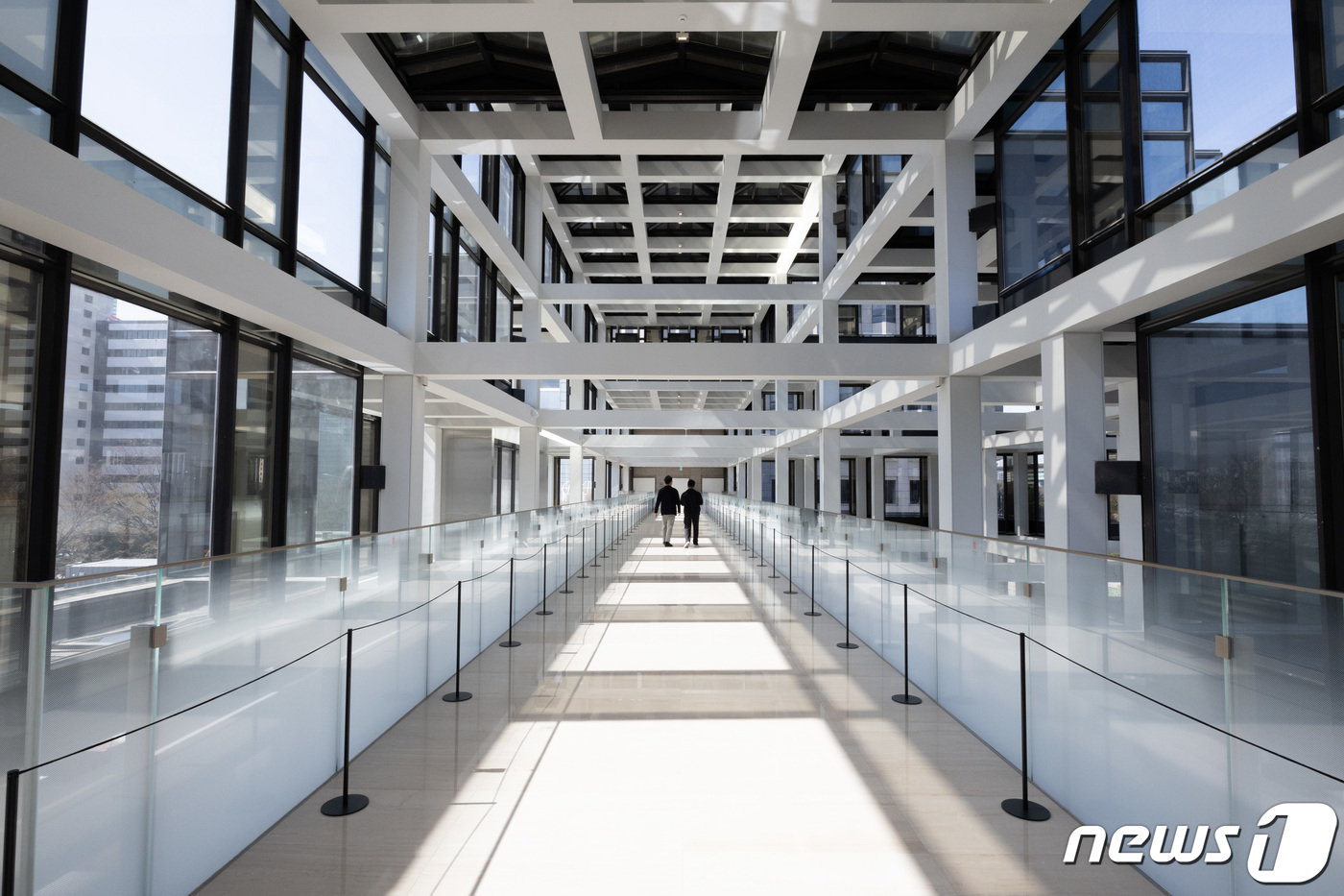 서울 여의도 LG트윈타워 내 동관과 서관 2층을 일직선으로 연결하는 '트윈 브릿지'의 모습. 동관 2층에는 '트윈 피트니스', 서관 2층에는 '라이프 타운'이 들어선다. 2024.4.1/뉴스1 ⓒ News1 이재명 기자