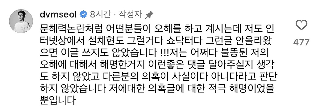 쇼닥터 아니냐고 싸잡혀서 해명한거라 함