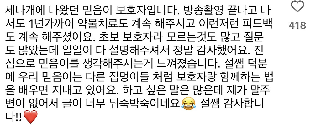 진료받고, 솔루션받았던 반려인들의 댓글들