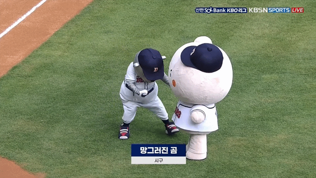 망그러진 곰 망곰이 두산 베어스 시구.gif