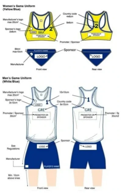 반면 남자 비치핸드볼 선수의 규정은 좀 더 느슨하다. ’남자 선수는 무릎 위 10cm의 길이 규정을 지키며 너무 헐렁하지 않은 반바지를 입어야 한다.”