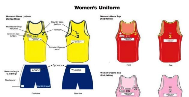 국제핸드볼연맹(IHF)에 따르면 비치핸드볼 여성 선수는 ‘경기 중 꼭 비키니 하의를 착용해야 한다. 비키니 하의는 밀착된 핏으로 다리 윗부분을 향해 위쪽 각도로 옷의 구멍을 잘라야 한다. 측면 폭은 최대 10cm 여야 한다.’