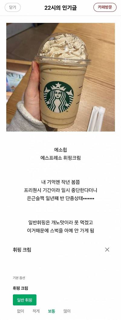 외부음식 금지지만 적당히 봐주는 카페