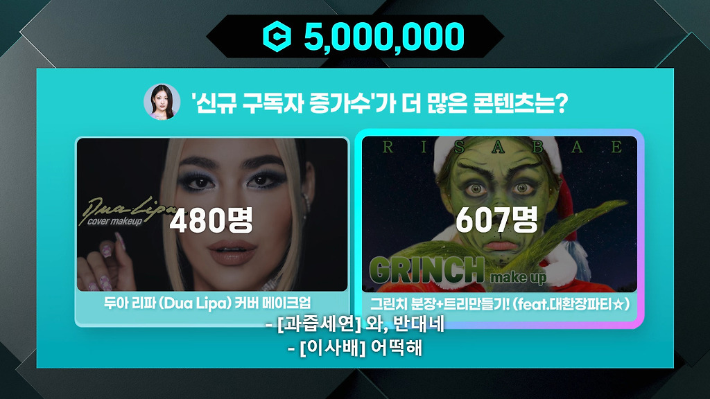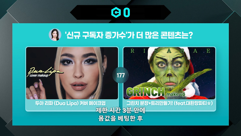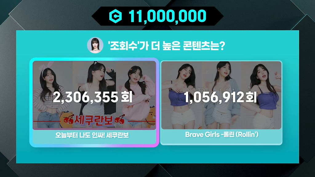 상대방의 2가지 영상중 섬네일, 제목만 보고 어느쪽이 더 많을지 고르고