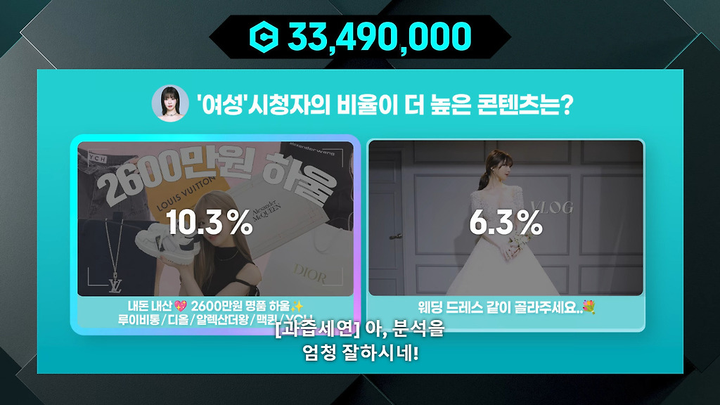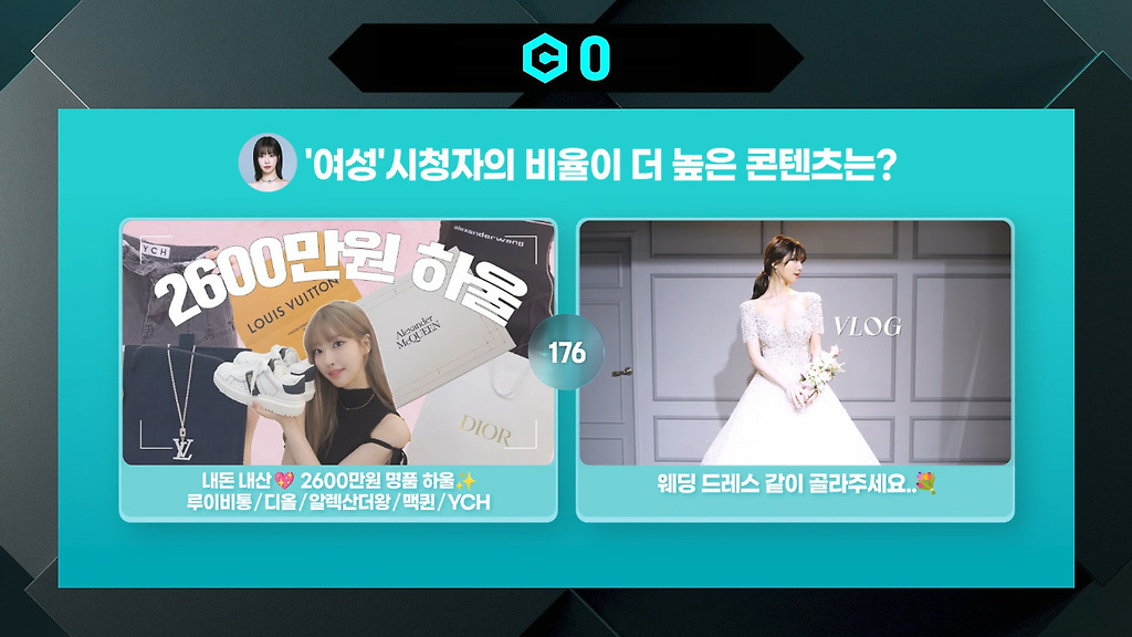 여성 시청자 비율 더 높은 영상 고르는건데
