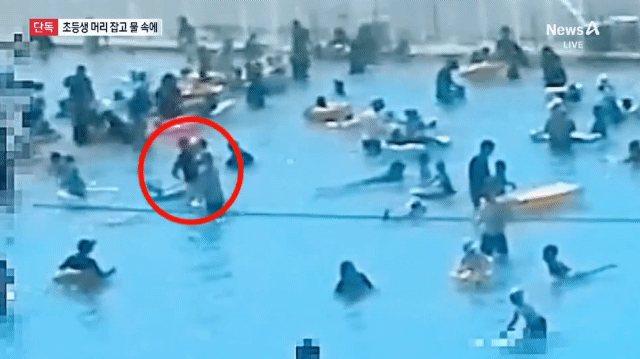 옆에 있던 중학생 누나가 저항하지만, 이후에도 두어 차례 더 머리를 물 속에 넣습니다.