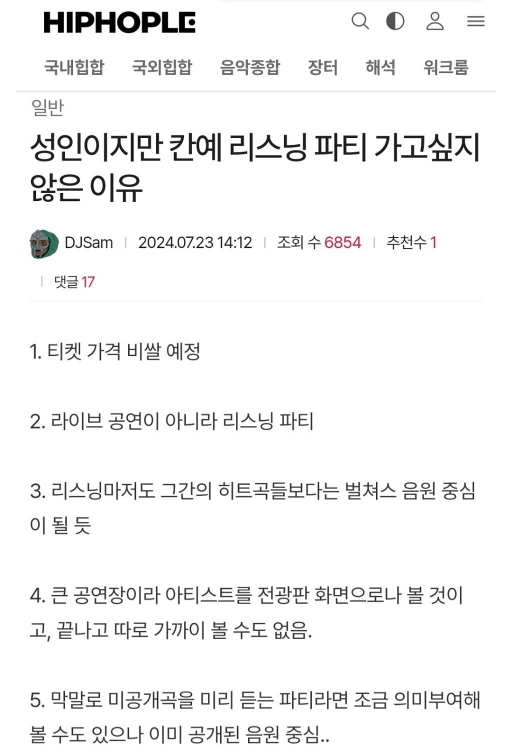 이슈 지금 K 힙합 팬들한테 난리났다는 칸예 리스닝 파티 상황 ㄷㄷㄷ.jpg
