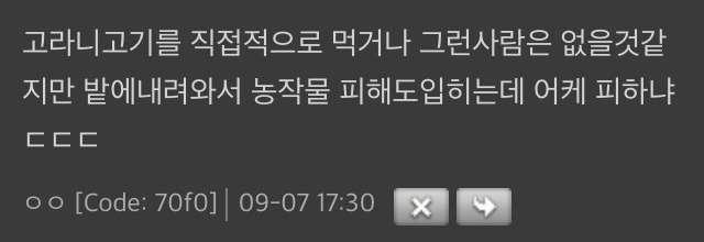 현재 고라니의 대부분이 CWD에 감염되었을 거로 '추정'되는 상황임(CWD 연구고 방역이고 한국에선 없음)