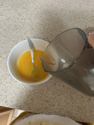 뜨건물이니깐 계란 섞으면서 넣어줘야야해!!