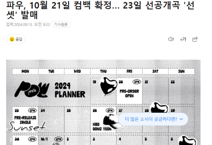 진짜 가수들 컴백기사 다 쏟아지는거 같아