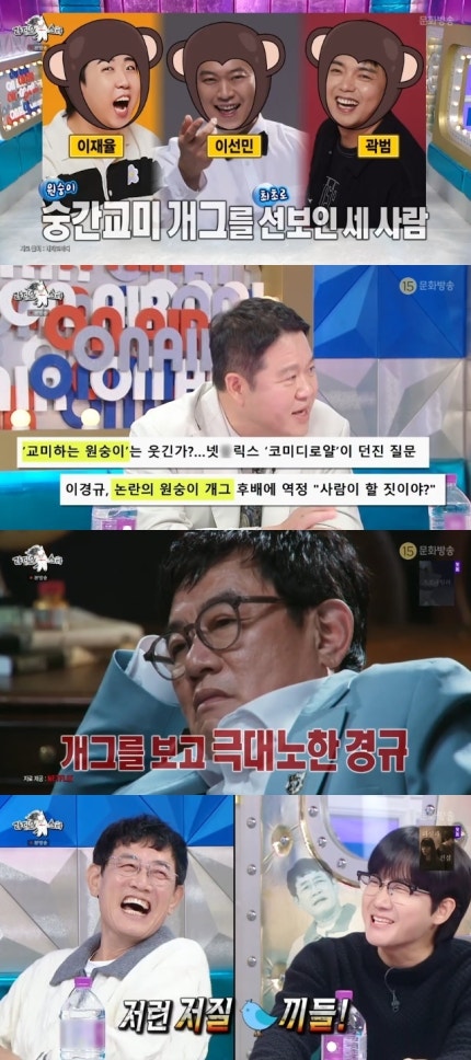 이날 이경규는 원숭이간 교미 개그를 보고 극대노한 사연을 공개했다. 이선민은 "3배 정도 더 심각한 상황이었다"고 회상했고, 극대노를 한 장본인인 이경규는 "'동물의 왕국'에서도 교미는 모자이크 처리를 한다. 하물며 인간이, 내 후배들이 내 앞에서 나를 보면서 (하더라). '저 XXX XX들. 그만하라고 이제! 뭐하는 짓들이야!'(하며) 완전 정신 나갔다"고 밝혔다.