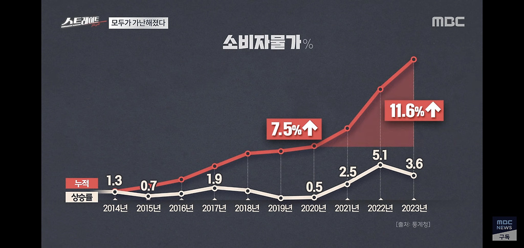 그런데 2021년부터 2023년까지 3년 사이 누적해서 11.6% 넘게 뛰었습니다.